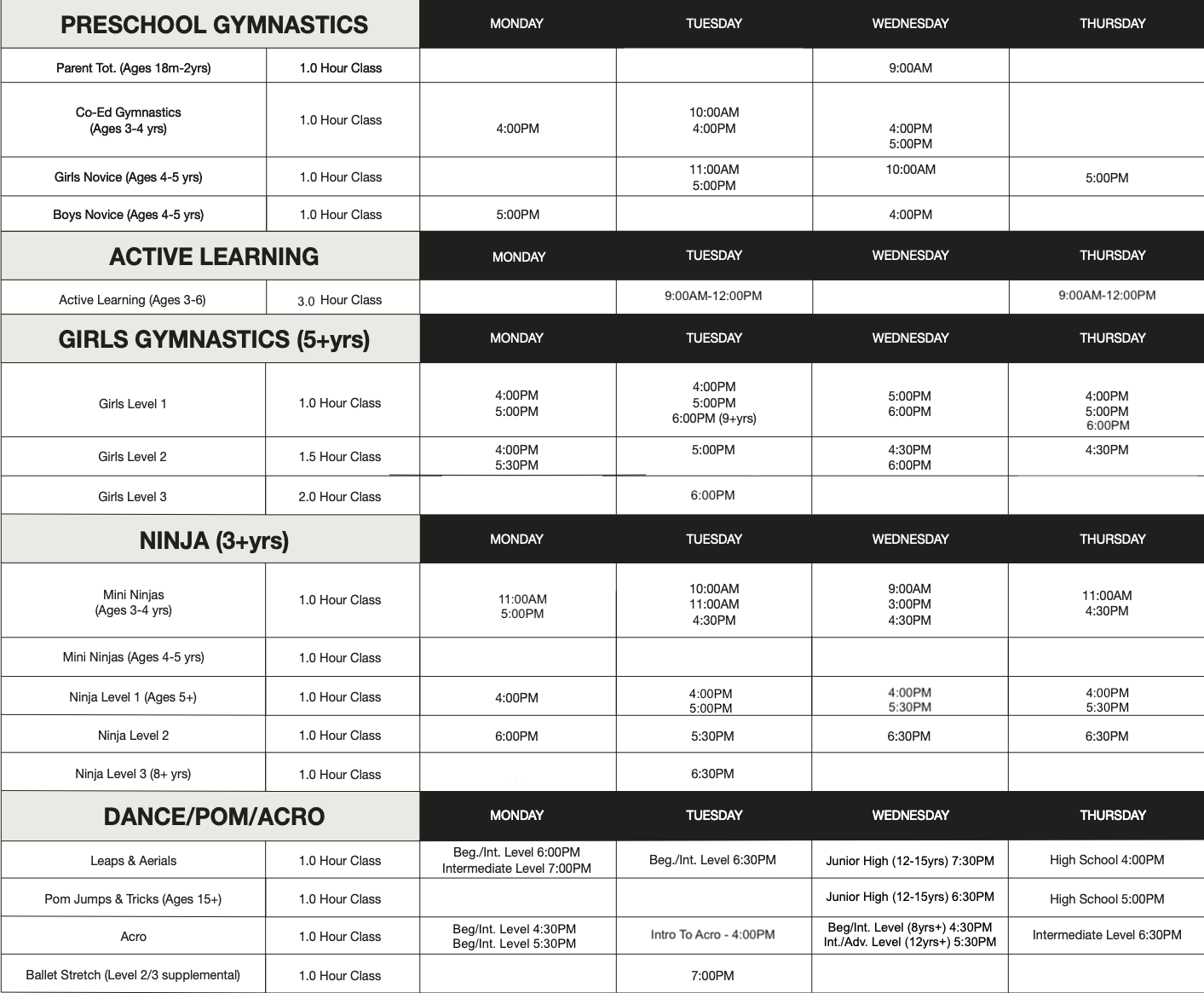 $75 Dance / Pom / Acro classes